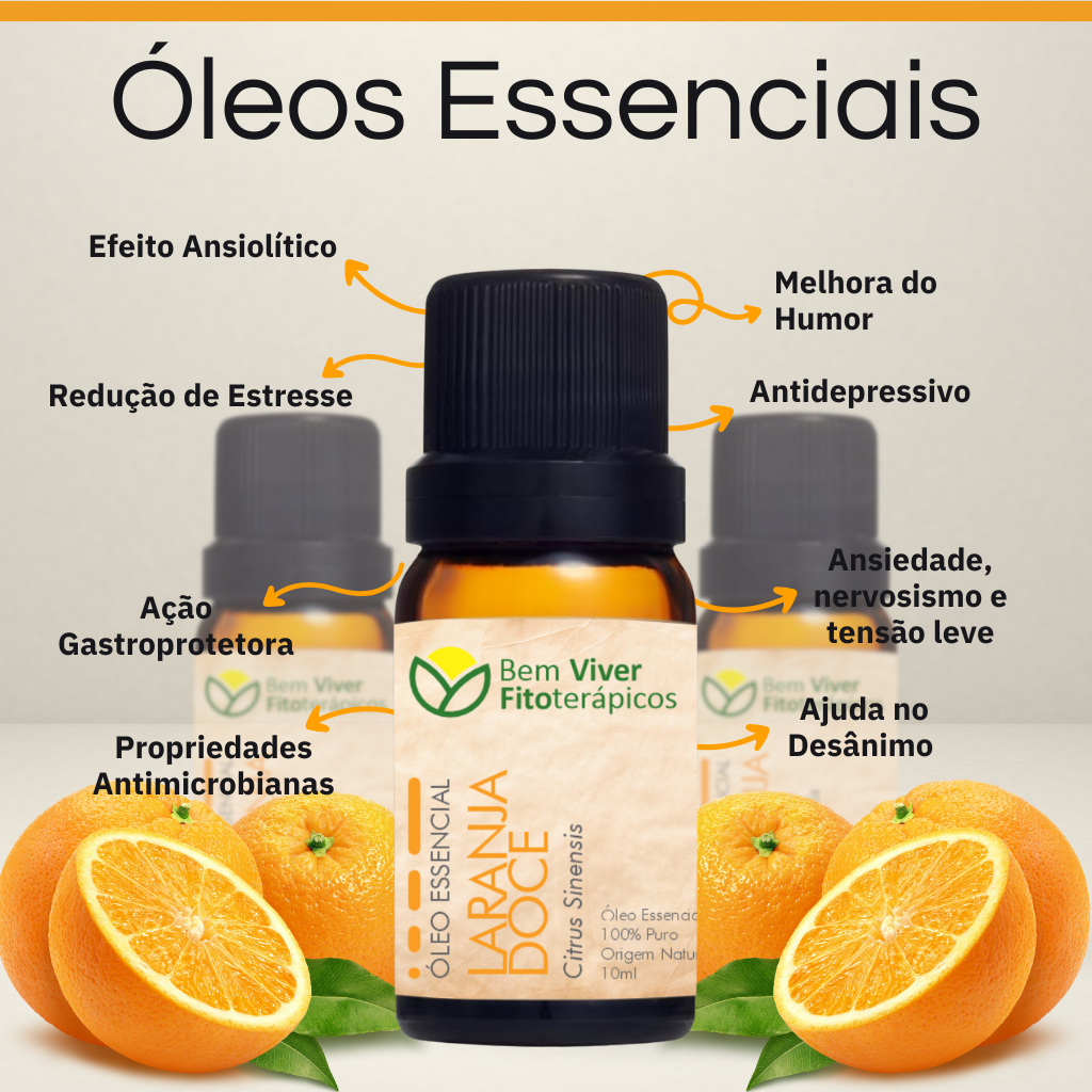 Investigações publicadas no Advanced Biomedical Research (2013) sugerem que a aromaterapia com Laranja Doce ajuda a reduzir sintomas depressivos e melhora o estado emocional geral, atuando nos receptores olfativos que se comunicam com o sistema límbico (cérebro emocional) [4].